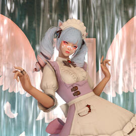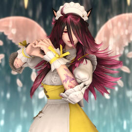Shizukas Lächeln strahlt der Sonne gleich. Diese immerfröhliche Au Ra scheint durch nichts betrübt werden zu können. Sie hat sich die kindliche Neugierde bewahrt und wird Euch fast unfallfrei die süßen Wünsche erfüllen, die im Maid-Café geboten werden.