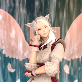 Diese kleine beerensüchtige Miqo'te versucht stehts ruhig zu wirken. Mal mit oder ohne Erfolg, aber steht mit einem Lächeln auf den Lippen.
